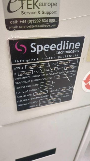 Speedline, MPM Momentum, Screen Printer with Airex Air Con Unit , Serial No M200373, Year 2008