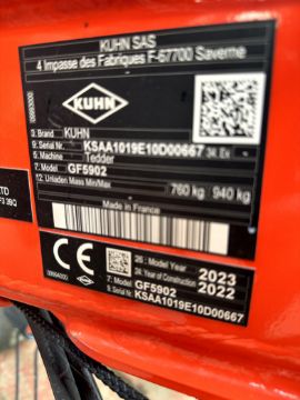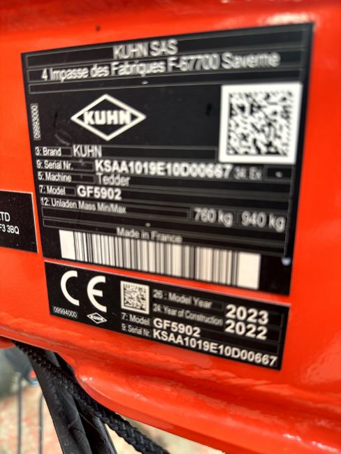 1: Kuhn GF5902, Tedder , Serial Number: KSAA1019E10D00667, Year of Manufacture: 2022
