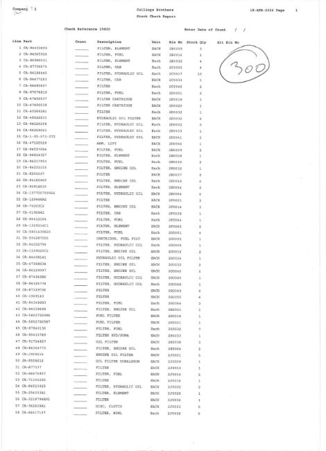 Contents of 4 Racks to Include a Large Quantity of Air, Oil, Hydraulic, Cab Filters As Lotted(Please See Listing for Contents of Lot 300 in Photo Schedule, This List is for Guidance Purposes Only)