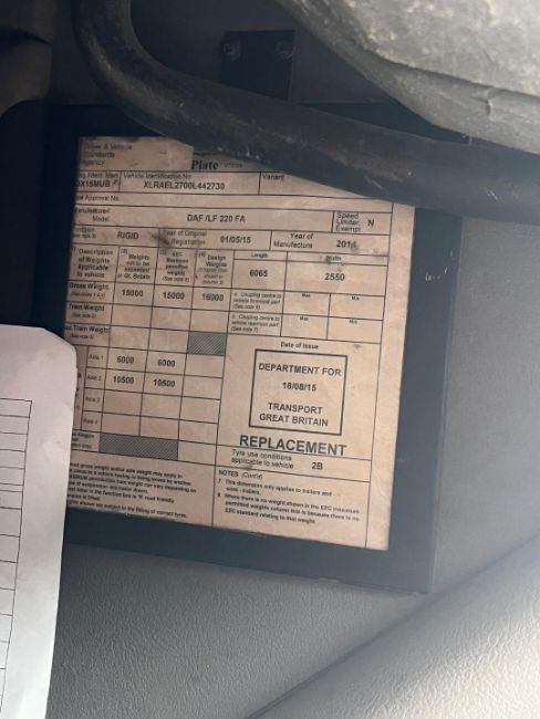 2015 DAF LF 220 FA 16T SWEEP Johnston VT651 - Truck Mounted Sweeper Registration No. DX15 MUB 8 Speed Manual 202,109 Miles Vin No. XLRAELZ700L442730 Complete with Johnston Sweeper Body LOCATION: SIPSON